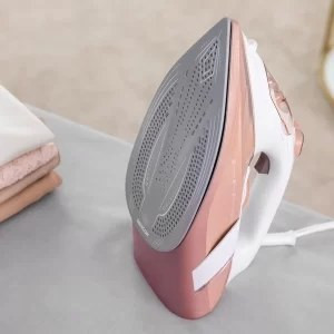 دکمهی چرخشی بزرگ روی بدنه به شما اجازه میدهد حرارت را متناسب با نوع پارچه تنظیم کنید. همچنین با دکمهی مخصوص بخار، میتوانید بین بخار پیوسته یا بخار لحظهای (انفجاری) یکی را انتخاب کنید. اگر پارچهای خشکتر یا ضخیمتر دارید، بخار لحظهای کمک میکند سریعتر چروکها را از بین ببرید.