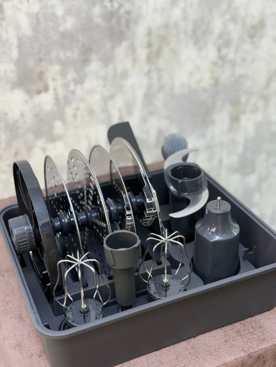 ظرفیت ظرف خردکن این دستگاه 3.4 لیتر است و امکان تهیه مواد غذایی را در یک بار استفده میسر میسازد برای مثال تهیه سوپ برای 7 نفر ، همزدن 7 سفیده تخم مرغ و تهیه 1.7 کیلوگرم خمیر را امکان پذیر میکند. ورودی ظرف خردکن این قابلیت را ایجاد میکند که هر گونه مواد غذایی و میوه و سبزیجات بدون برش وارد ظرف خردکن شود.