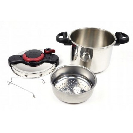 زودپز تفال دارای یک سبد بخارپز تمام استیل بوده و به شما این امکان را میدهد که با قرار دادن سبد درون زودپز خیلی سریع غذایی سالم و سرشار از ویتامین را بخارپز کنید. که این ویژگی برای افرادی که رژیم دارند و به سلامت موادغذایی خود اهمیت میدهند بسیار مناسب است. این زودپز با 5 سیستم امنیتی که دارد شما را از نگرانی خارج نشدن بخار و منفجر شدن زودپز راحت میکند. درپوش این زودپز به گونهای طراحی شده است که شما تنها با یک دست به سادگی در زودپز را باز و بسته میکنید. همچنین میتوان این زودپز را در ماشین ظرفشویی نیز شست.